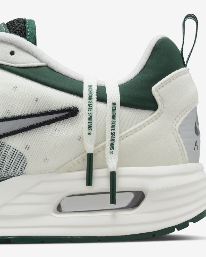 These sneakers are for the Air Max and Michigan State superfan. We created a modern interpretation by combining elements from past models (like the AM180 textured Nike Air unit and the AM90-inspired heel cup) for a shoe that maxes out your game day style.