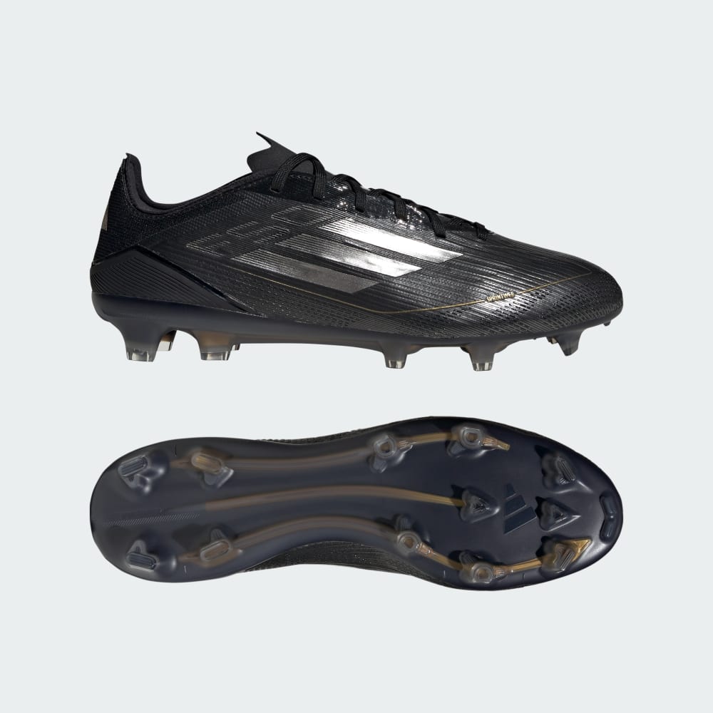 Adidas F50 Pro Firm Ground Soccer Cleats Core Black / Iron Metallic / Gold Metallic